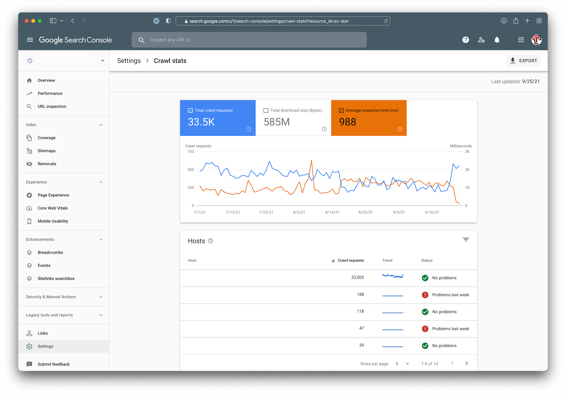 In order for Google to index your website, they need to crawl it. They look for a bunch of stuff during the crawl. As a site owner, it's valuable to understand how much they are crawling your website and what the results are.