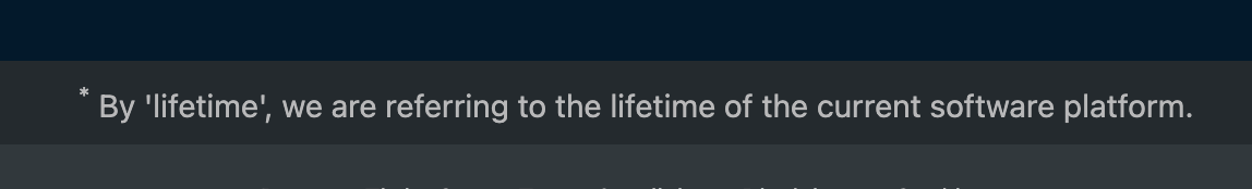 Lifetime access refers to "the lifetime of the current software platform."